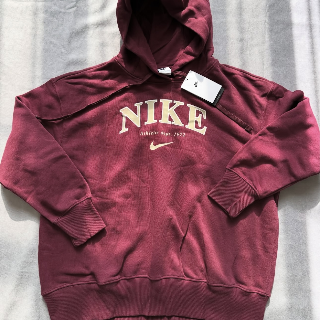 کلاه با بند تنظیم داره که میتونی بسته یا بازش کنی، و جیب جلوش یه فضای خوب برای دست یا وسایلت ایجاد میکنه. لوگوی ساده و کلاسیک Nike هم جلوهی استایل اسپرت و مینیمال رو کامل میکنه.