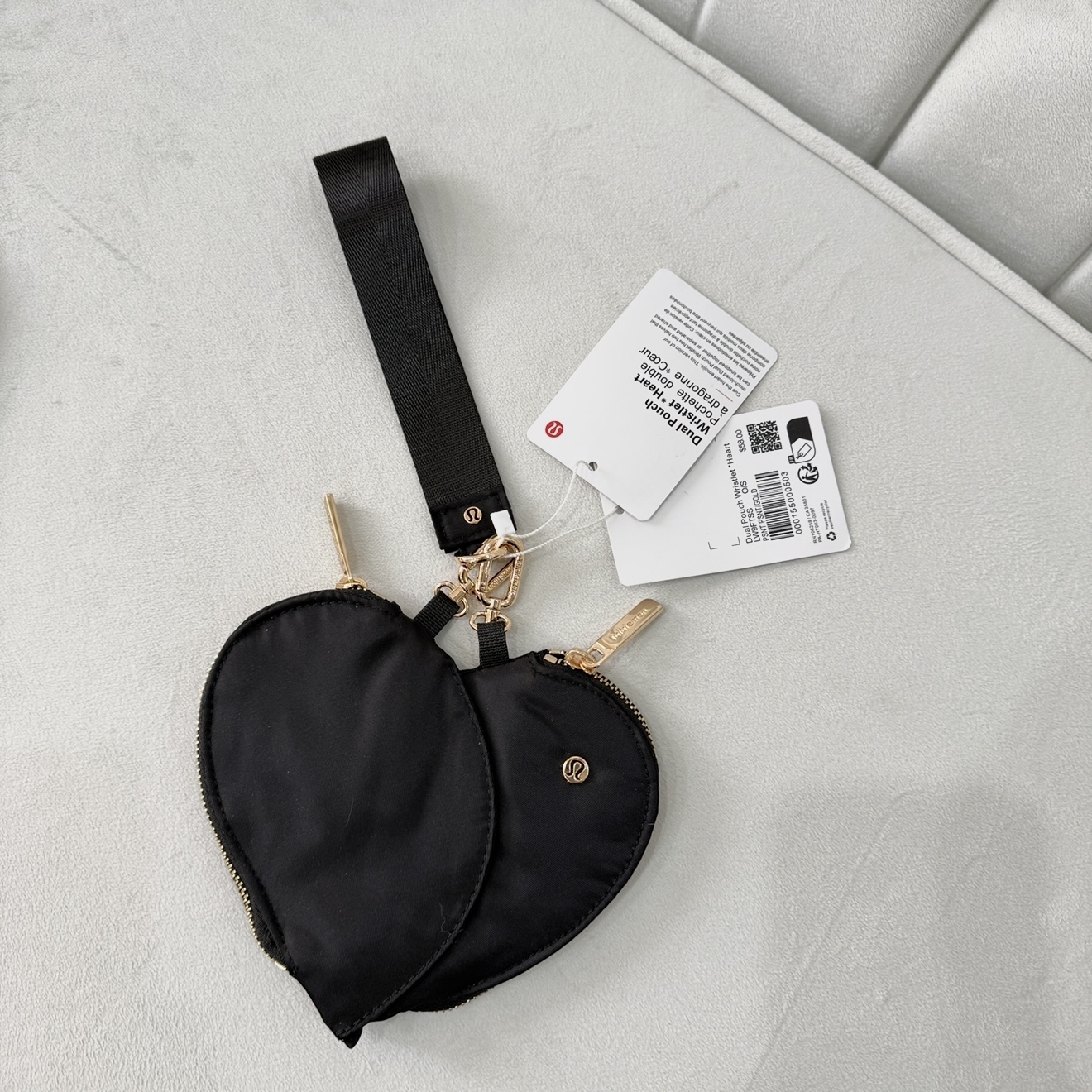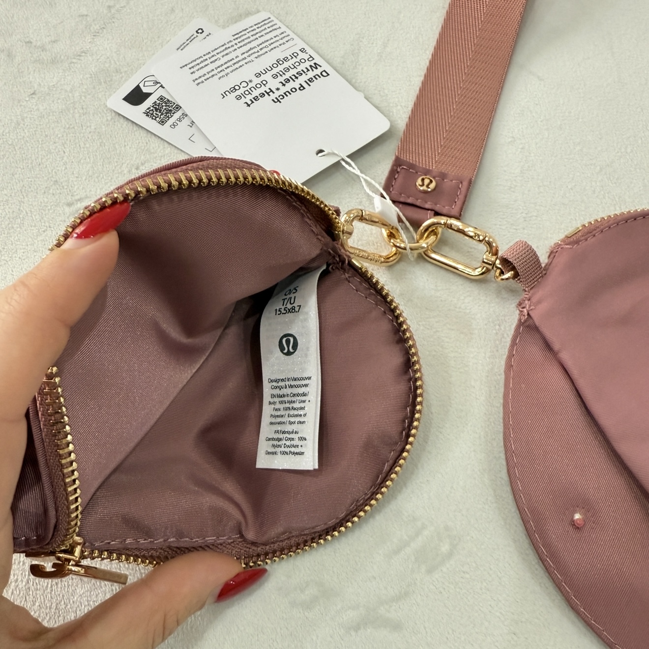 این کیف دستی یونیسکس از Lululemon مدل Dual Pouch Wristlet Heart طراحی خاص و کاربردی داره که هم استایل روزمره داره و هم برای نگهداری لوازم کوچیک عالیه.