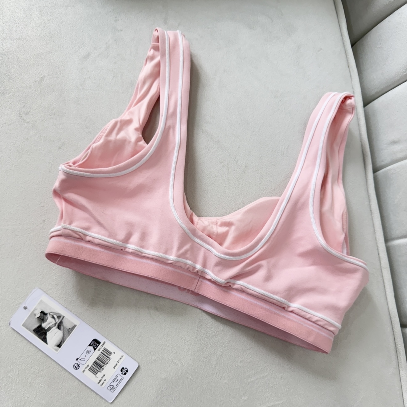 یک بند کشی نرم زیر سینه برای حمایت بهتر طراحی شده که بدون ایجاد فشار، ثبات خوبی در حین حرکت فراهم میکند. همچنین دوختهای کنتراست و خطوط فرمدهنده باعث میشود ظاهر لباس اسپرت و خاصتر دیده شود.