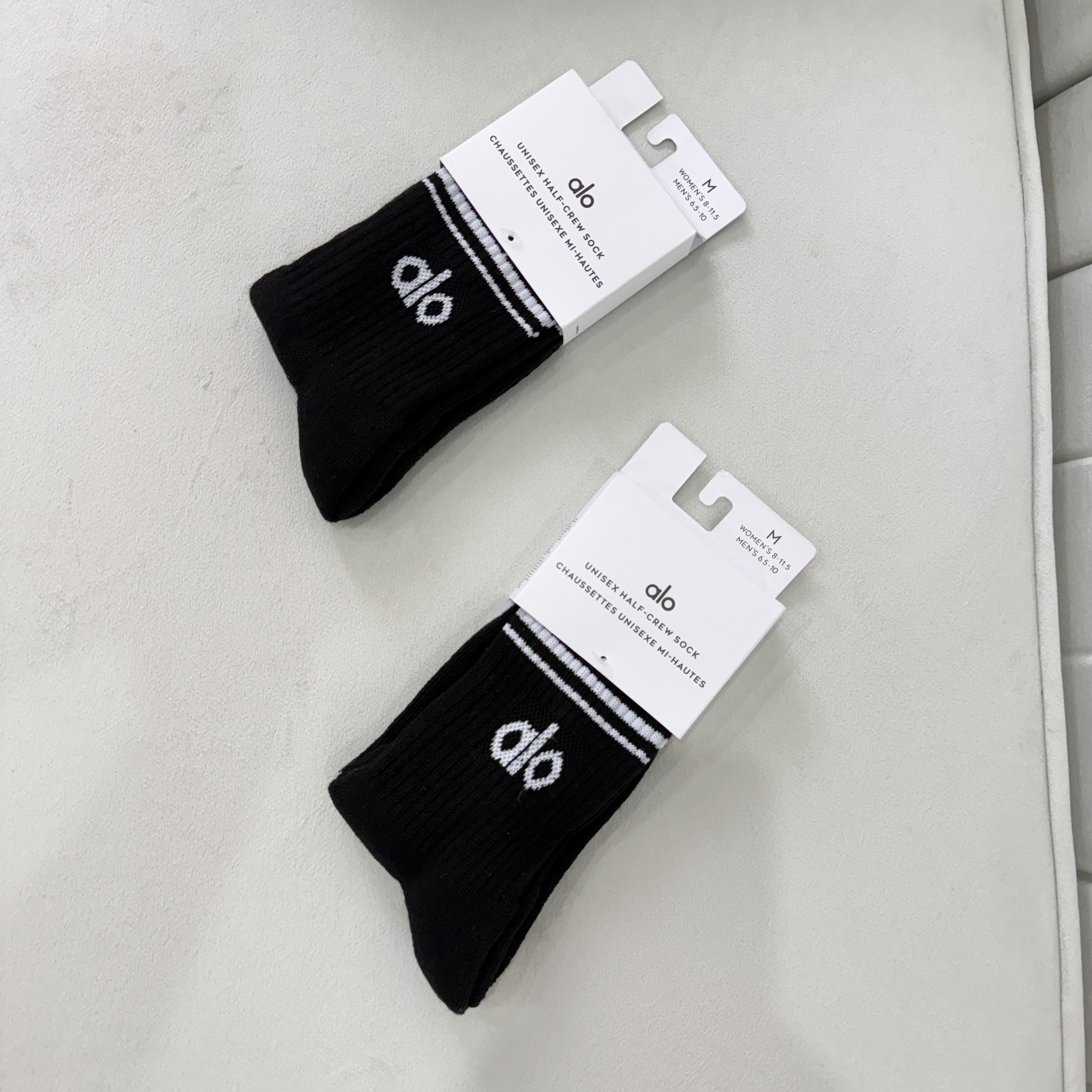 Alo Yoga Throwback Sock یک جوراب اسپرت یونیسکس با طراحی کلاسیک و راهراه است که برای استایل ورزشی و روزمره طراحی شده. این مدل حس نرم و راحتی دارد و با بالشتک داخلی سبک باعث میشود در تمرین یا استفاده روزانه پا راحتتر بماند.